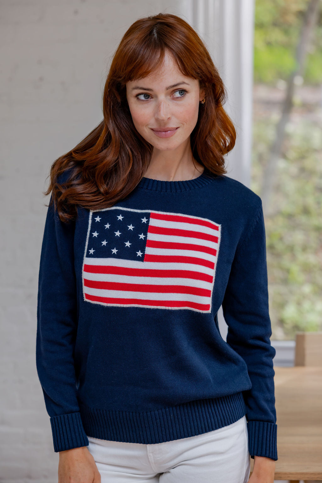 classic you’ll reach for season after season, this American flag crewneck sweater combines effortless comfort with elevated style.